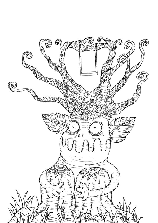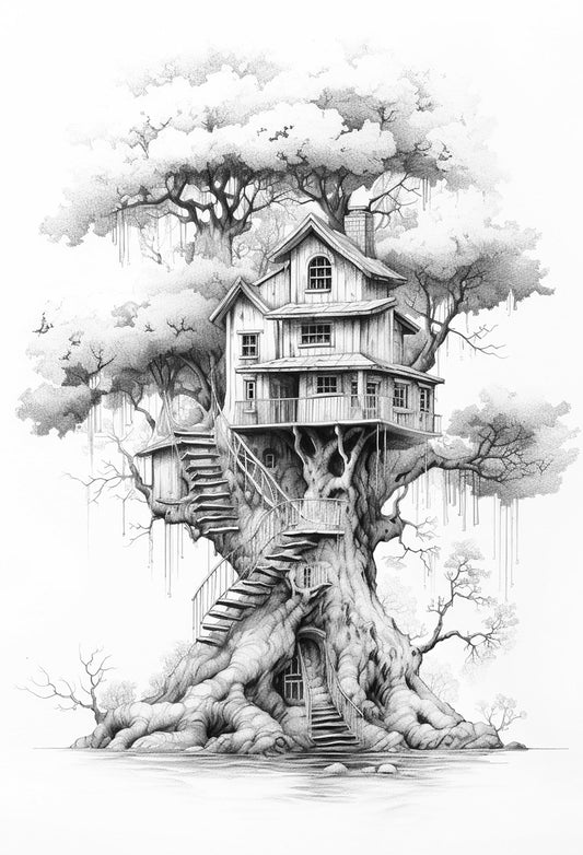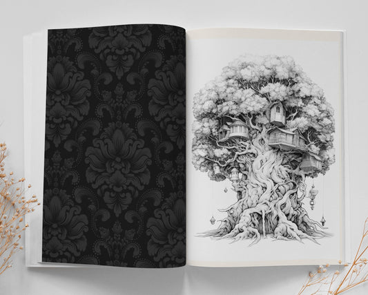 Baumhäuser Malbuch Graustufen (Buchdruck)