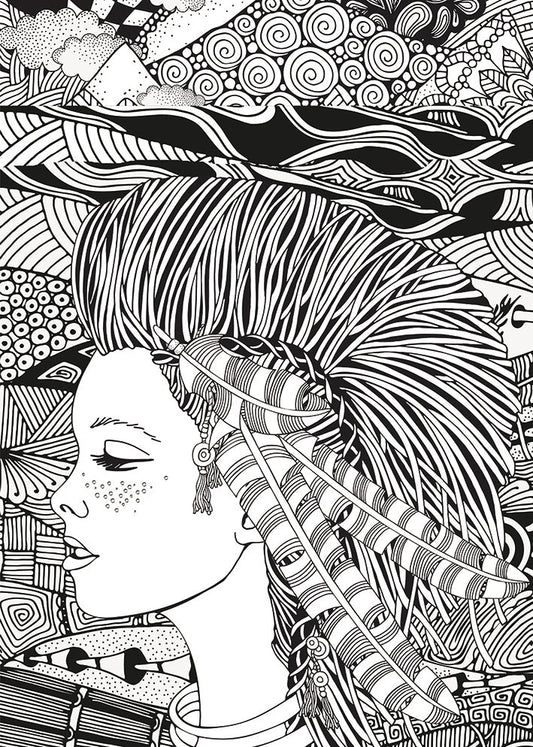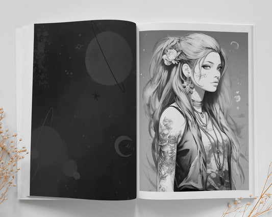 Boho Girls Malbuch Graustufen (Buchdruck)