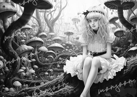 Alien Landschaften Malbuch Graustufen (Digital)
