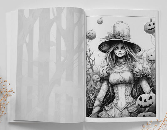 Halloween Malbuch Graustufen (Buchdruck)